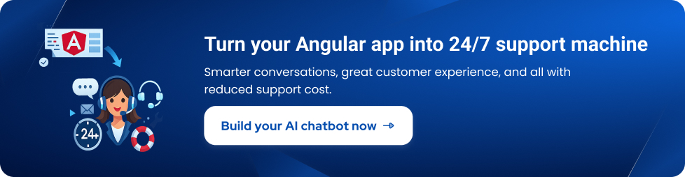 User engagement can be largely enhanced in Angular apps by using AI chatbot services. By utilising AI APIs like OpenAI or Dialogflow with Angular’s HTTPClient, developers can build intelligent conversational interfaces that offer assistance in real time, answers frequently asked questions and automate customer support.