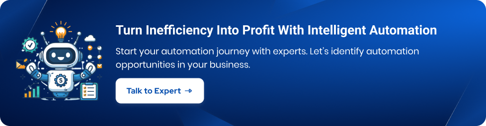 | How Much Can You Actually Save with Intelligent Automation? Most US enterprises underestimate how much they can save. In just 60 seconds, get a clear estimate of your potential cost reduction, ROI, and efficiency gains. What They’ll Get? ✔️ Estimated operational cost savings ✔️ Automation impact on your workflows ✔️ ROI timeline (in months) ✔️ Productivity improvement insights Calculate My Cost Savings No SIgnup required • Instant results • Built for US enterprises |