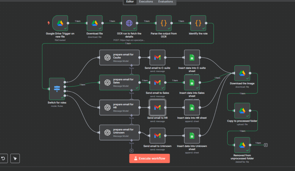 • For each node, you will need to configure its settings, such as connecting credentials for external applications or defining parameters for data processing.