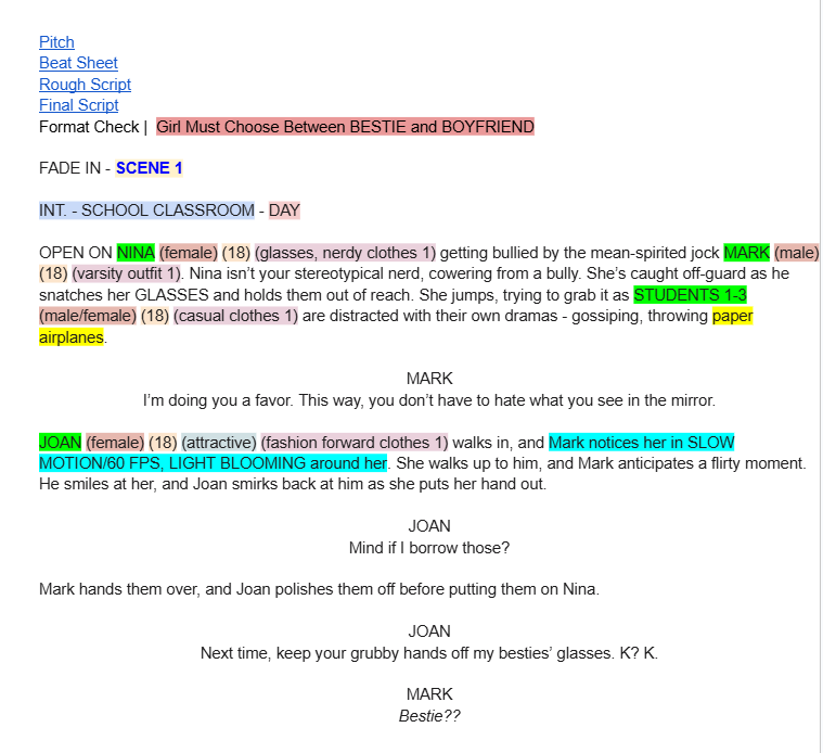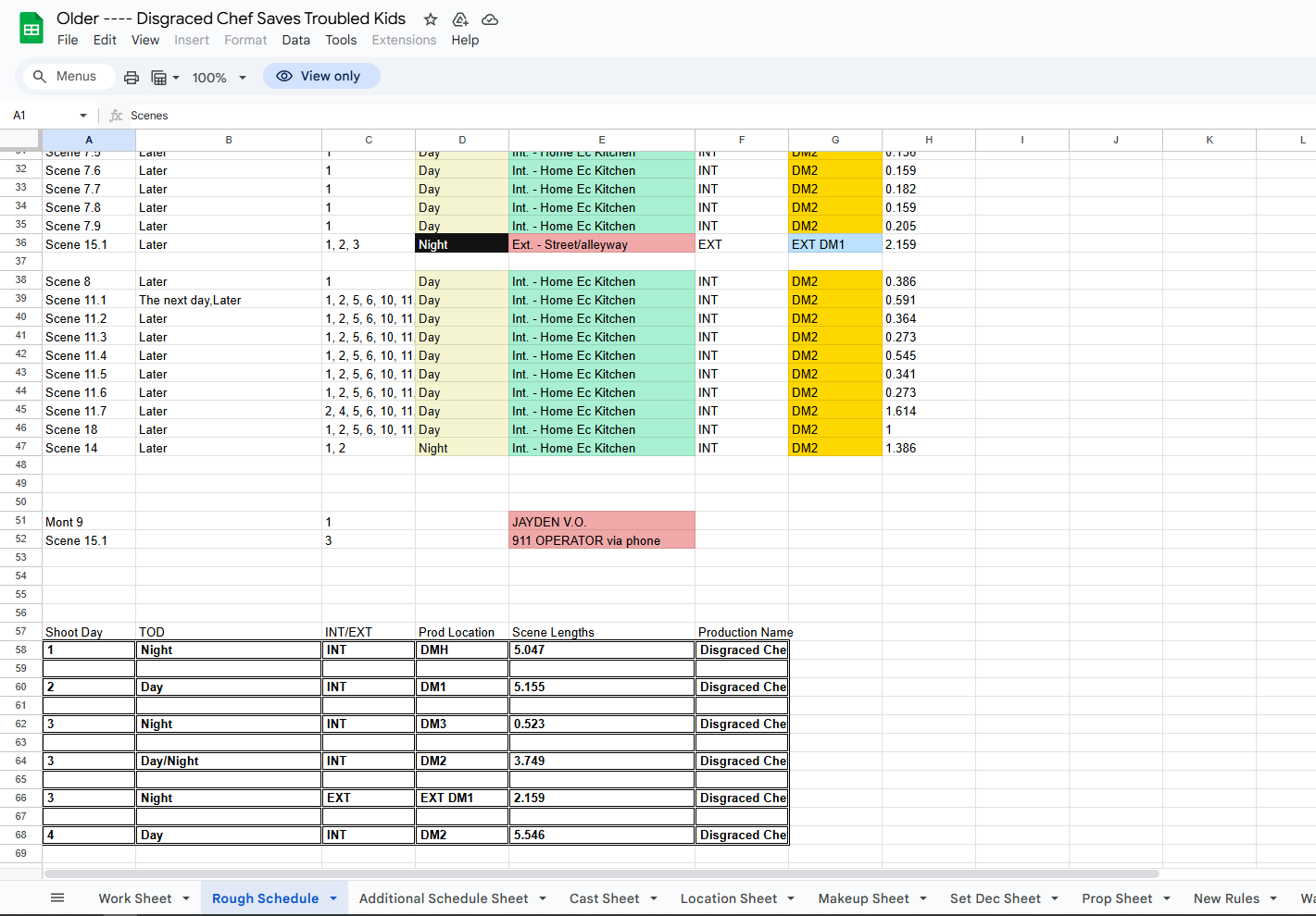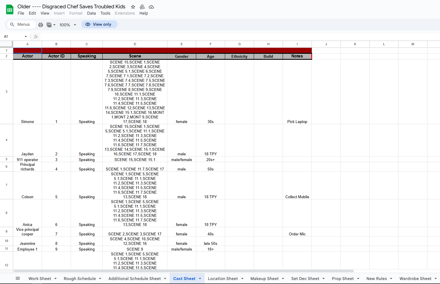 Once tagged, the add-on extracted everything into a structured Google Sheet—complete with scene lengths, character roles, and prop lists. What used to take hours now happens in minutes.