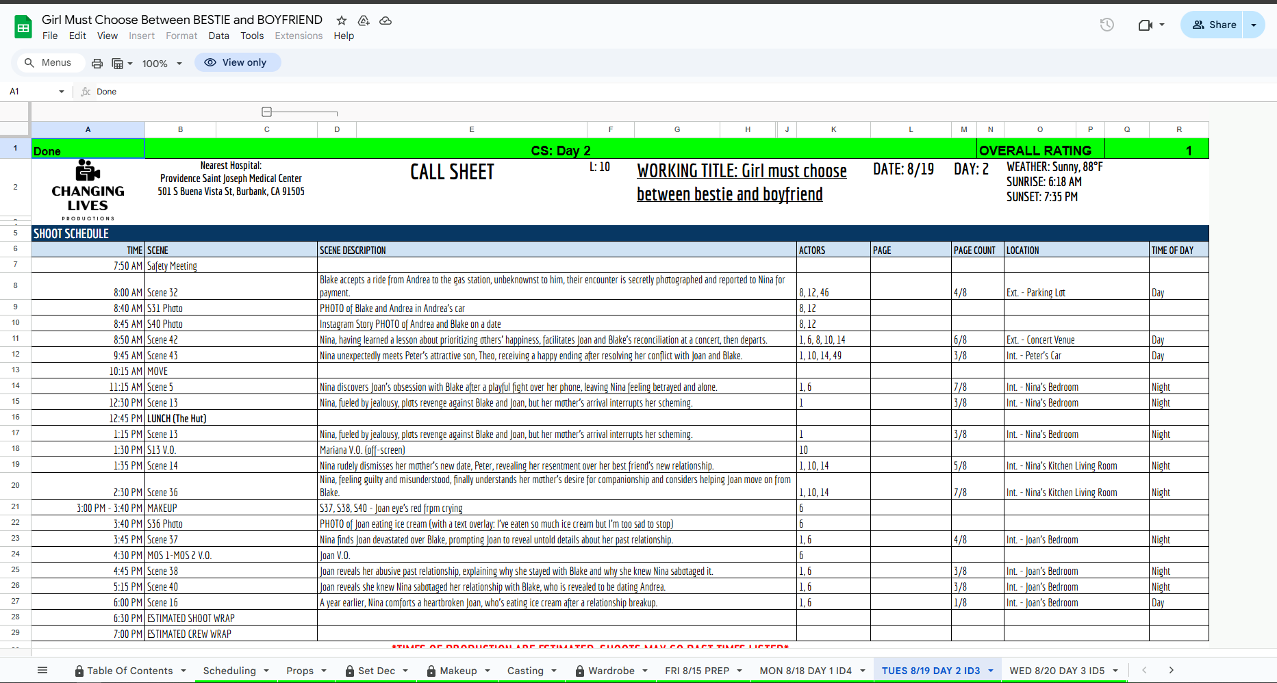 This gave every team member, from casting to wardrobe, a clear, ready-to-use view of what was coming up.