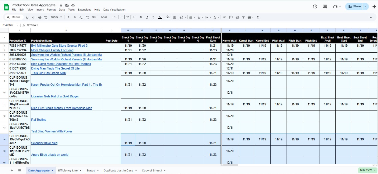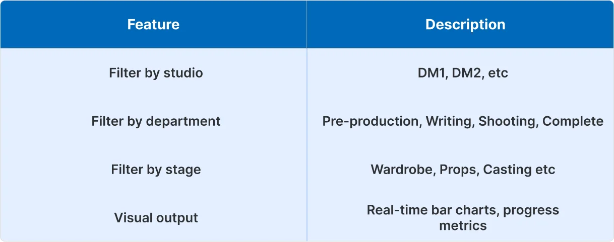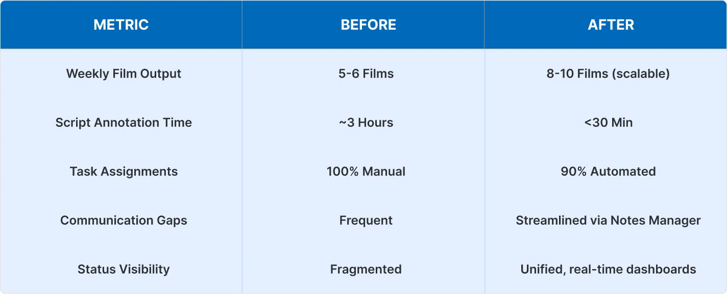 With so many films in motion, team members often struggled to locate which stage a production was at. Was it still in writing? Was shooting complete? Without a master tracker, productions felt scattered, and teams wasted time just trying to figure out the status.