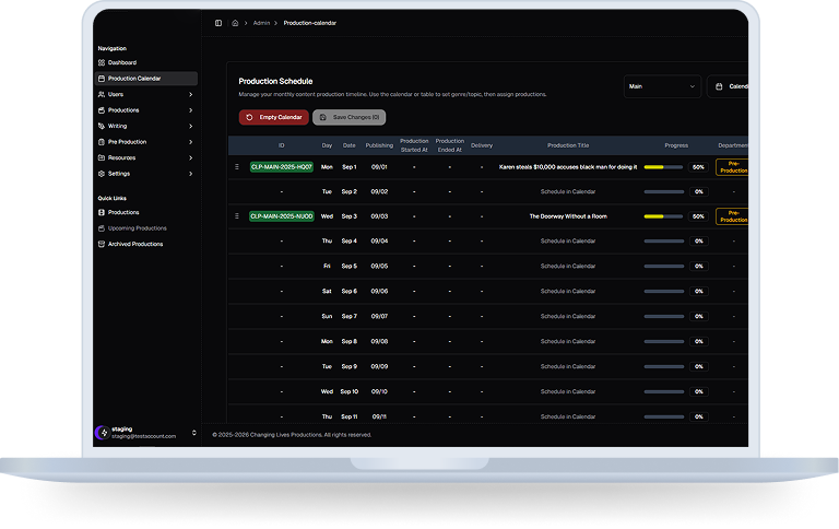 Changing Lives Production (CLP) is a California-based media and film production company with a team of 200+ creatives working across 8 active studios. Storytelling is in their DNA – fast-paced, emotional and powerful. On average, they roll out 5-6 short films every week, and with their growing momentum, they’re now scaling up to reach 8-10.