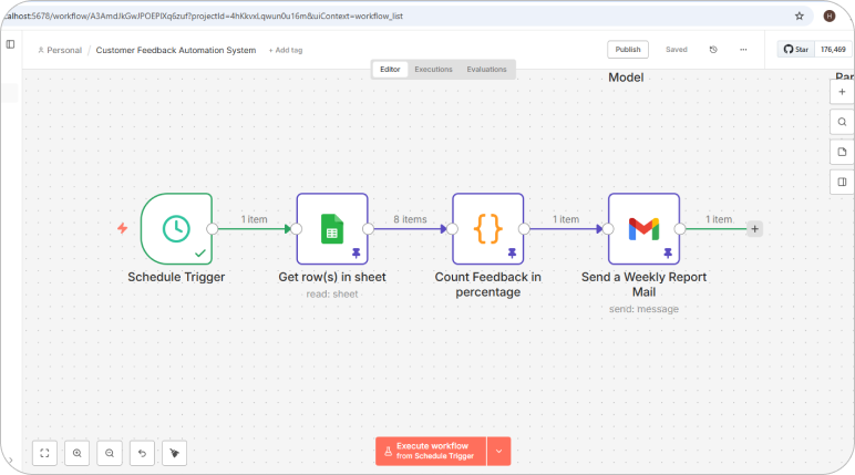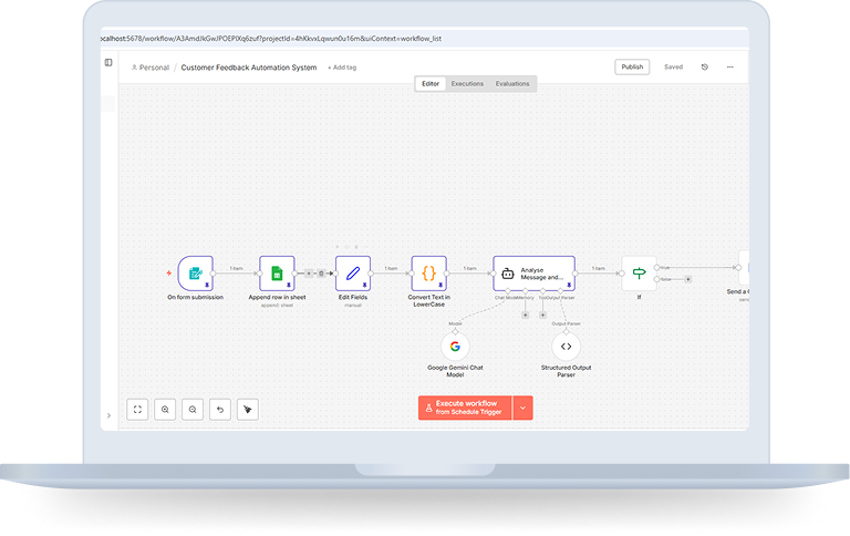 To solve this, we developed an AI-Powered Customer Feedback Automation System using n8n, integrated with Google Sheets and Google Gemini.