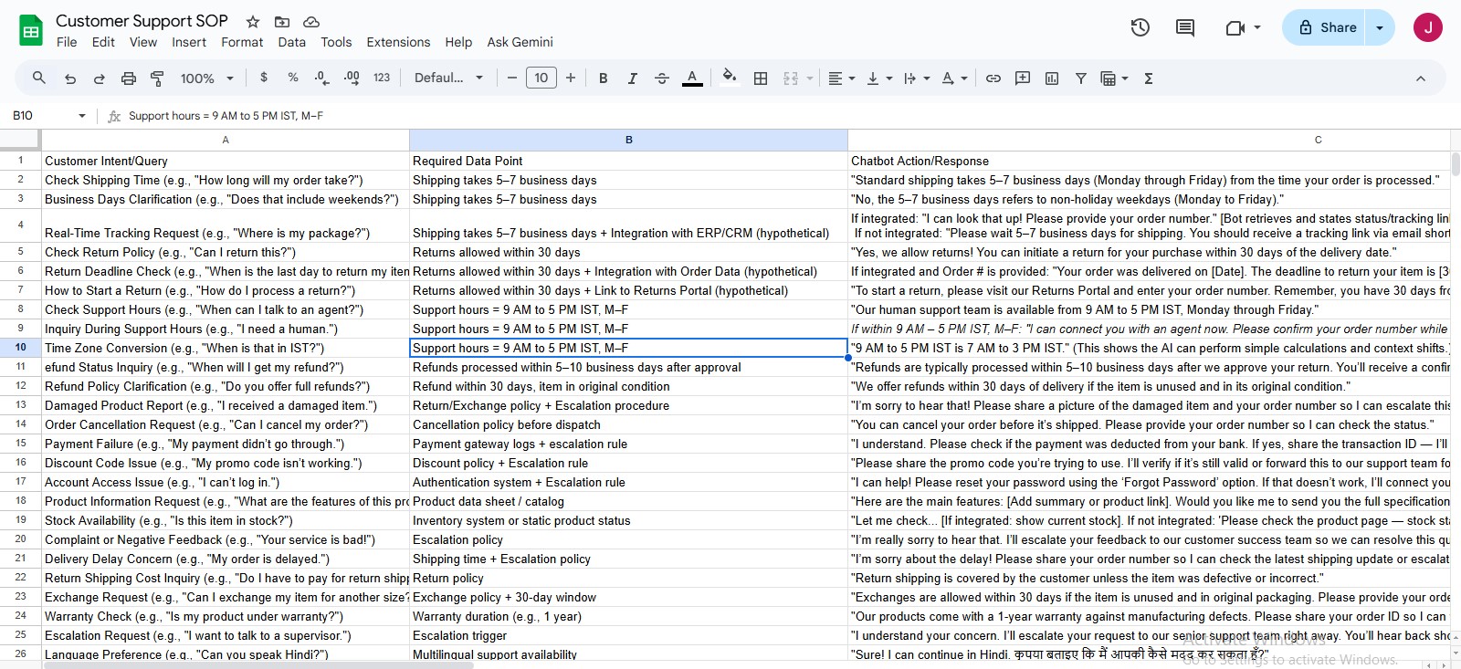 - SOP Data (Knowledge Base) stored in Google Sheets