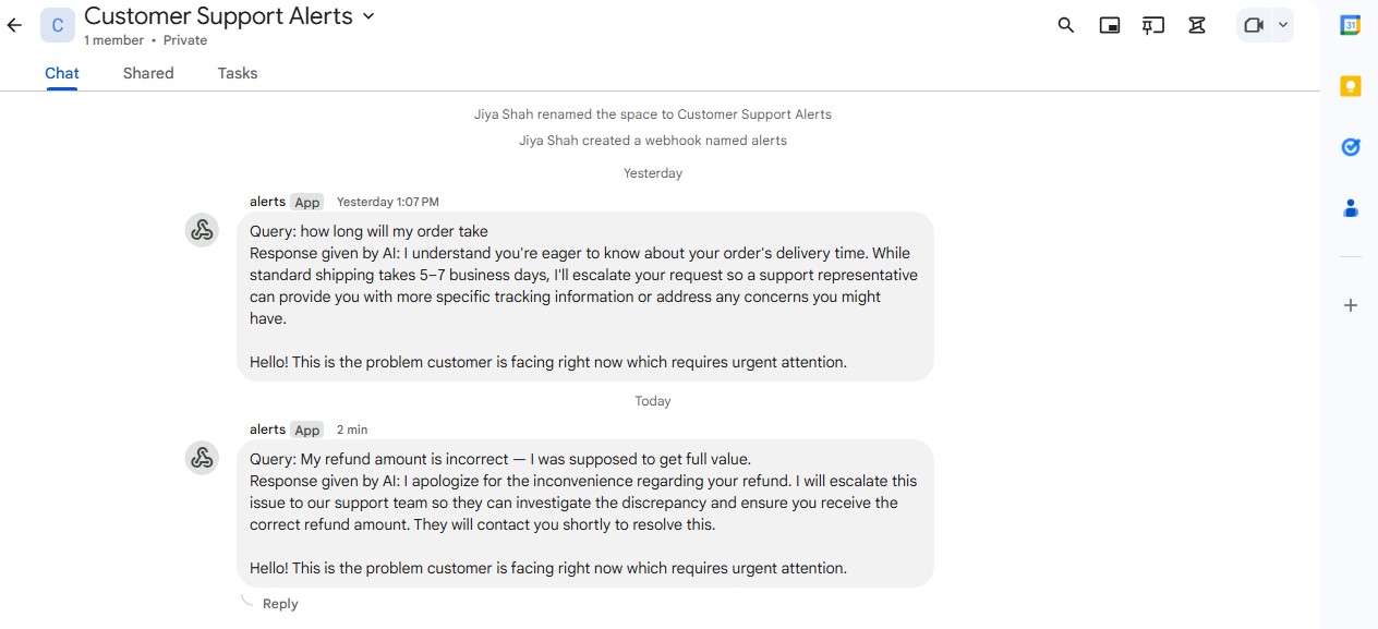 By combining AI-powered query handling with automated escalation alerts, businesses can drastically improve response speed, reduce manual workload, and ensure critical customer issues are never missed.