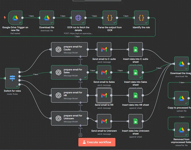 If you meet someone right now, just drop the scanned or photographed business card in a specific Google Drive folder. N8n keeps an eye on this folder so the workflow will automatically start running there is no click, form filling and waiting.