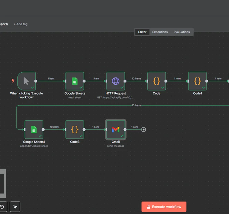 Once the keyword is established, n8n sends a request to Apify’s TikTok Scraper API.