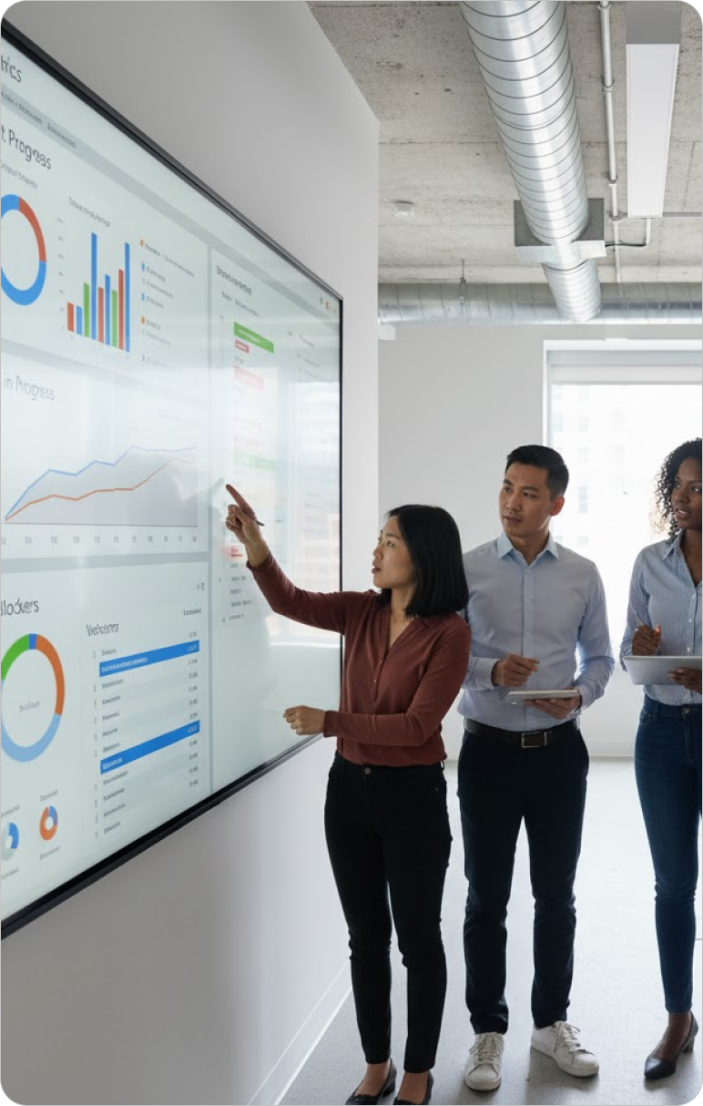 We don’t just code. We co-create with you. Weekly sprints, feedback loops, testing, and live demos ensure your product launches faster with fewer changes later.